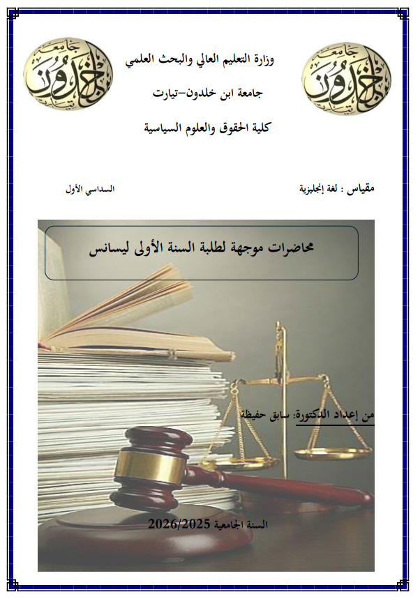 سيتم تقديم هذه المحاضرات بالتنسيق مع مقياس المدخل للعلوم القانونية.
