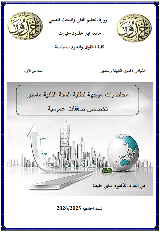 يندرج موضوع التهيئة والتعمير ضمن المواضيع الرئيسية التي حظيت ولا تزال تحظى باهتمام كبير لدى الباحثين والدارسين في مجال العمران، ما جعل المشرع الجزائري يسهب في تكييف وتطوير المنظومة العمرانية لمسايرة التغيرات والتطورات التي شهدها قطاع العمران خاصة بعد فترة الألفية، نظرا لما تعرضت له البلاد من كوارث لعل أبرزها زلزال بومرداس بتاريخ 21-05-2003، فيضانات باب الواد بتاريخ 10-11-2001، دون أن ننسى فيضان غرداية بتاريخ 01-10-2008.